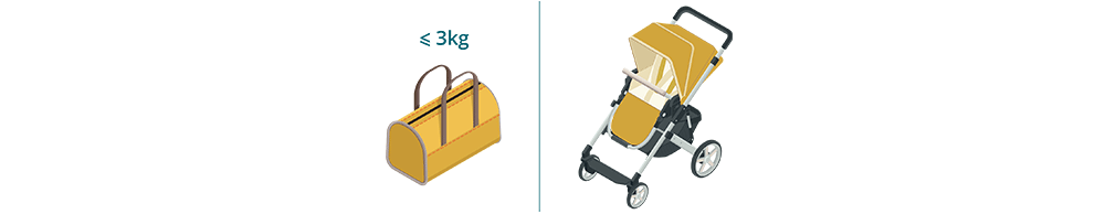 - 如果行李艙存放空間不足,符合上述隨身攜帶標準的嬰兒推車/嬰兒睡籃車將作為托運行李運輸(無需付費)。